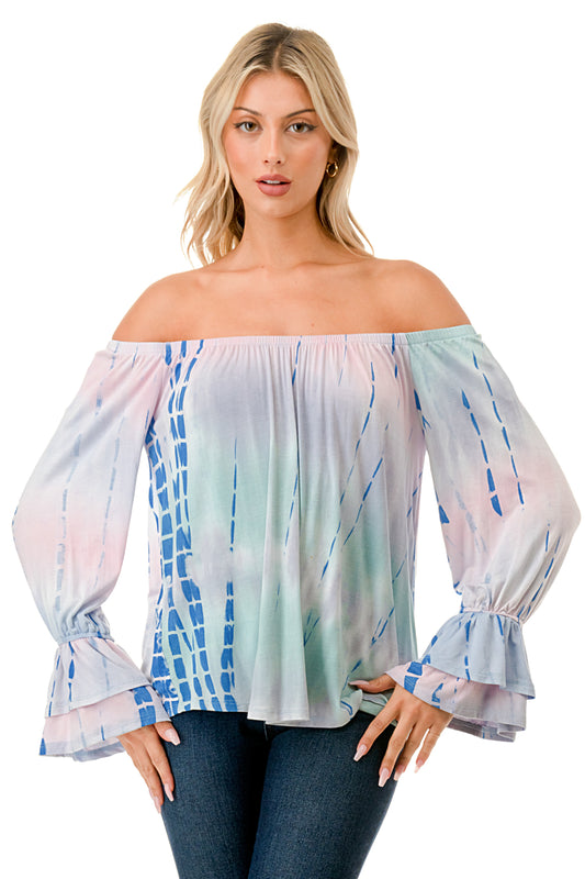 FRANCES OFF SHOULDER TOP (MULTI TIE DYE)- VT3160