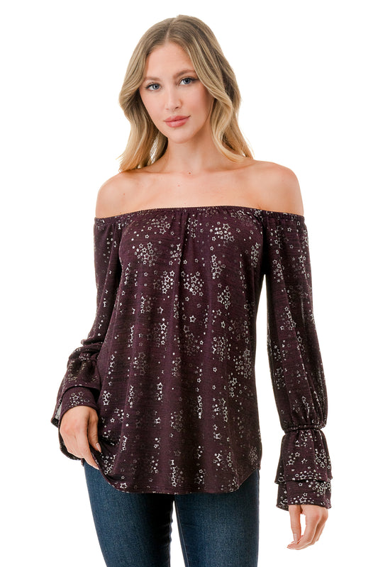 FRANCES OFF SHOULDER TOP (PURPLE SILVER)- VT3160