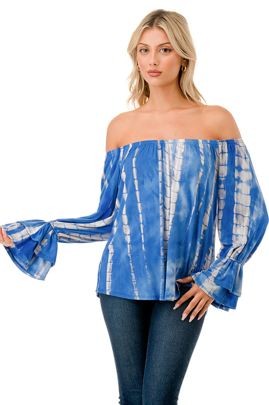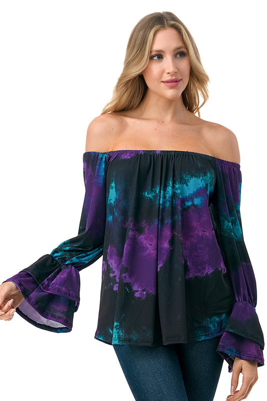 FRANCES OFF SHOULDER TOP (PURPLE TEAL TIE DYE)- VT3160