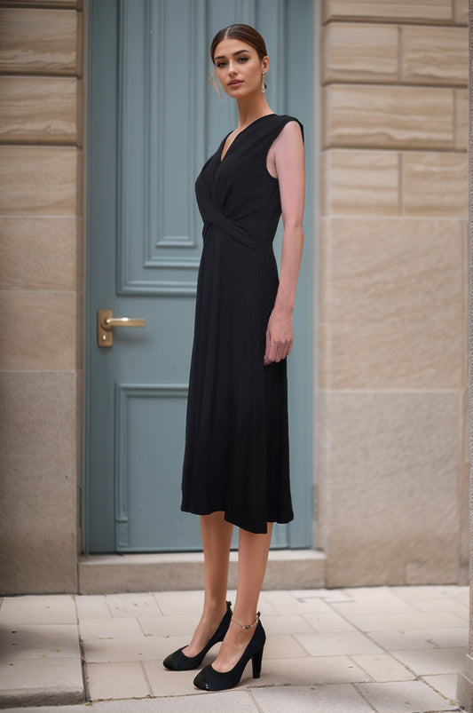 HARPER WAIST TIE MIDI DRESS (BLACK)-VD3439