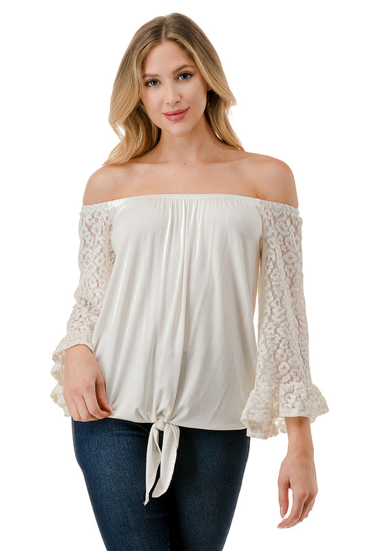 HARRIET OFF SHOULDER TOP (IVORY / IVORY LACE)- VT2509