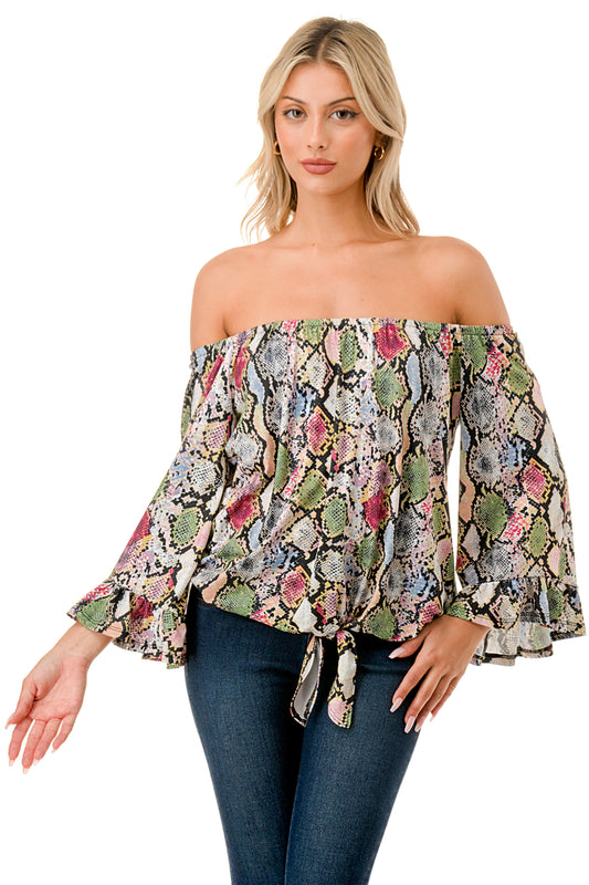 HARRIET OFF SHOULDER TOP (MULTI SNAKE)- VT2509