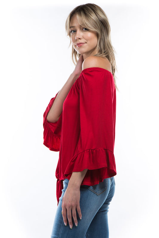 HARRIET OFF SHOULDER TOP (RED)- VT2509