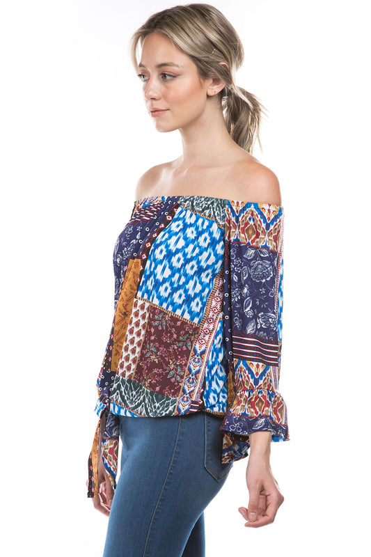 HARRIET OFF SHOULDER TOP (MULTI BOHEMIAN)- VT2509