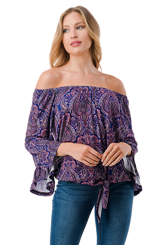 HARRIET OFF SHOULDER TOP (PURPLE PAISLEY)- VT2509