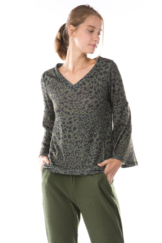 HATTIE BELL SLEEVE TOP (LEOPARD OLIVE)-VT2796