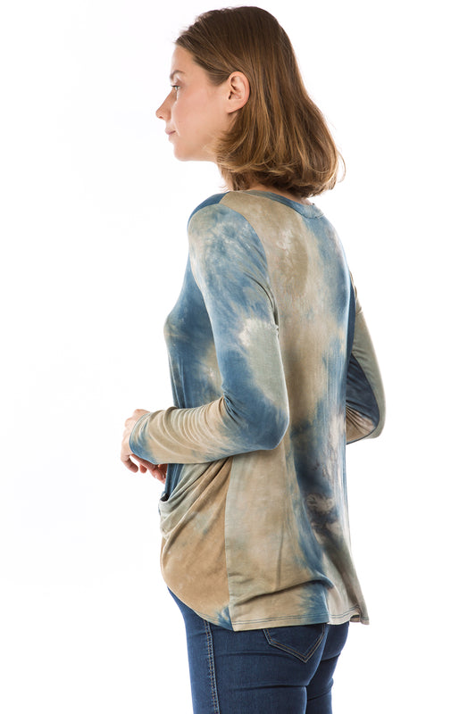 ALIA FRONT KNOTS TOP (TAUPE TEAL TIE DYE)-VT2785TRegular price $59.00 USDRegular priceUnit price / per-