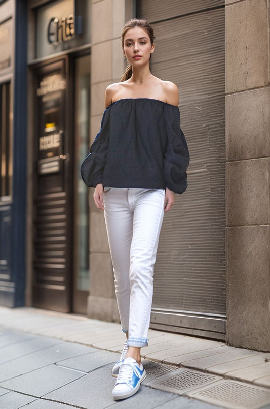 JINA OFF SHOULDER TOP (BLACK LINEN)-CVT1661