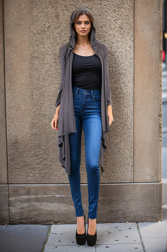 JESSIE HOODED CARDIGAN (CHARCOAL)-JT7396