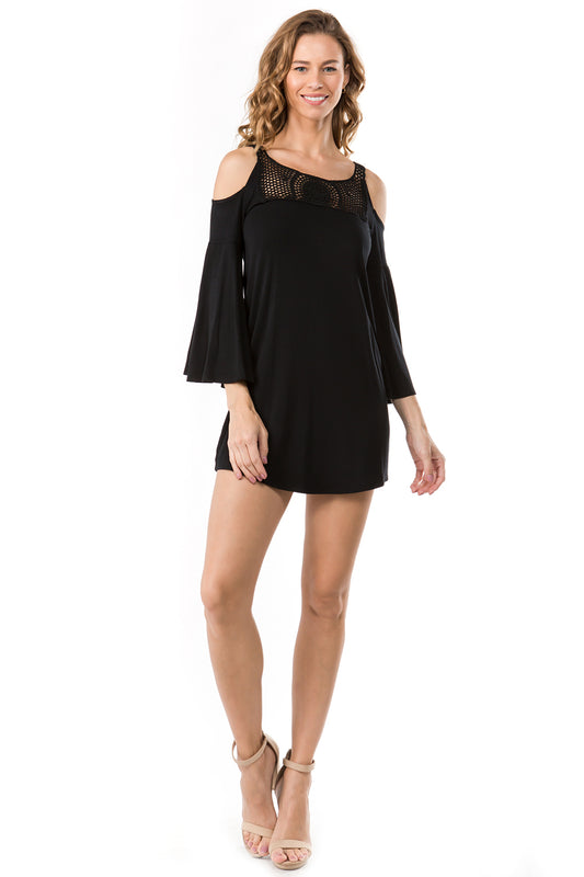 LACY 2 BELL SLEEVE OPEN SHOULDER DRESS (BLACK)- VD2563
