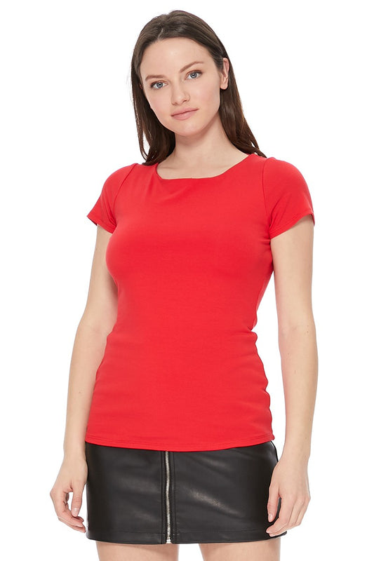 LACY SHORT SLEEVE TOP (RED)-VT2542