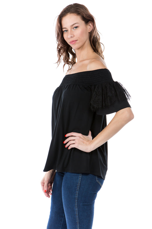 LACY SHORT SLEEVE TOP (BLACK)-VT2544