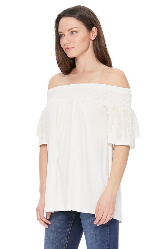 LACY SHORT SLEEVE TOP (IVORY)-VT2544