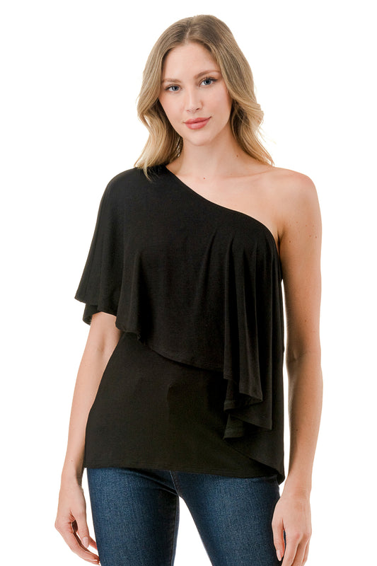 LAURA ONE SHOULDER TOP (BLACK)- VT7664