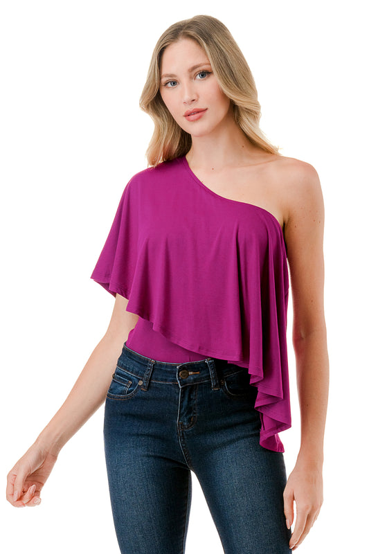 LAURA ONE SHOULDER TOP (MAGENTA)- VT7664