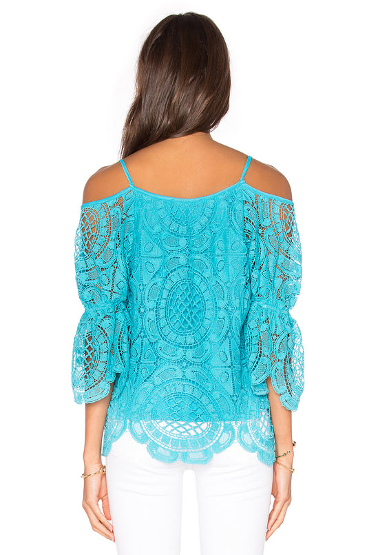 LAIA OPEN SHOULDER TOP (Aqua)-VT1283