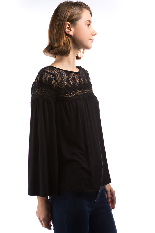 LEAH LACE YOKE TOP (BLACK)-VT2884