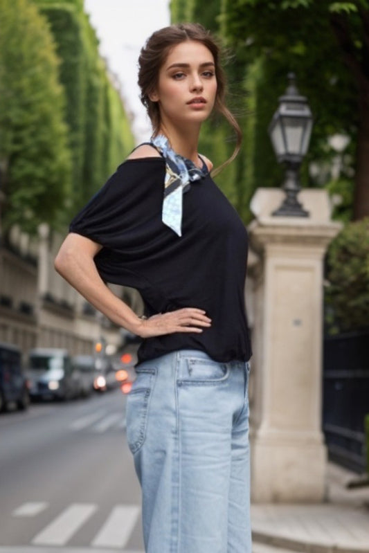 LOUISA SCARF BOW STRAP TOP (BLACK)-VT3292R