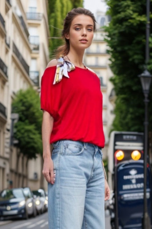 LOUISA SCARF BOW STRAP TOP (RED)-VT3292R