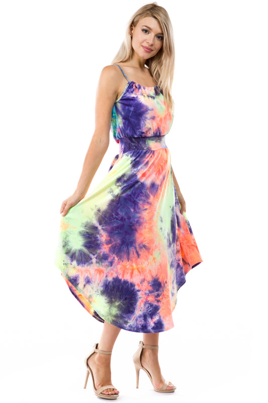 AGNES SLEEVELESS DRESS (NEON PURPLE TIE DYE)- VD2768T