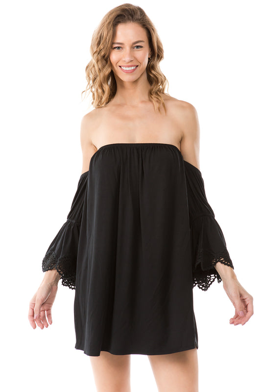 LACY 2 BELL SLEEVE OPEN SHOULDER DRESS (BLACK)- VD2563
