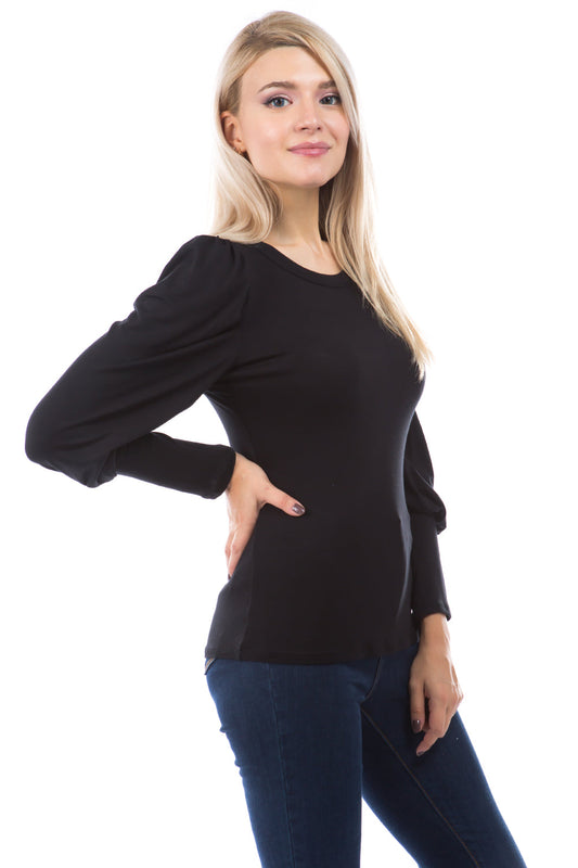 ANN BALLON SLEEVE BOAT NECK TOP (BLACK)-VT2863