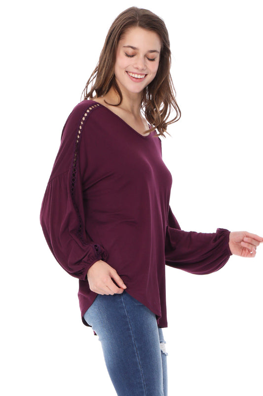 GRETA BUBBLE SLEEVE TOP (DARK WINE)-VT2623
