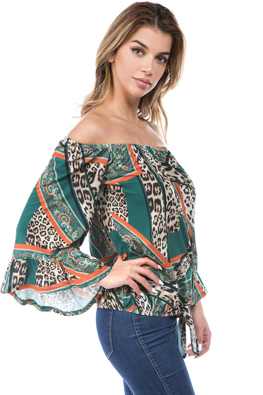 LIVIA OFF SHOULDER TOP (GREEN MULTI)- VT2509-LIVIA
