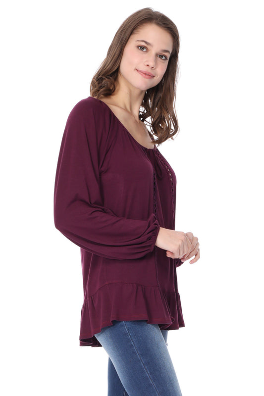 JAYNE LONG SLEEVE TOP (DARK WINE)- VT1180