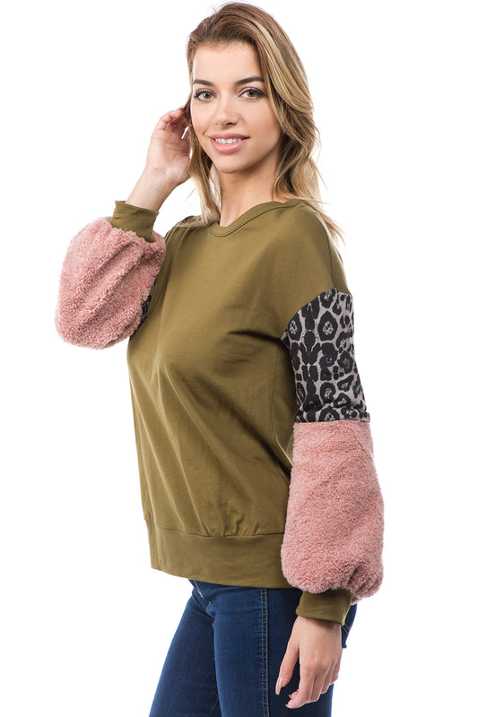 AGNES BUBBLE SLEEVE TOP (BLACK/CAMO)-VT2635