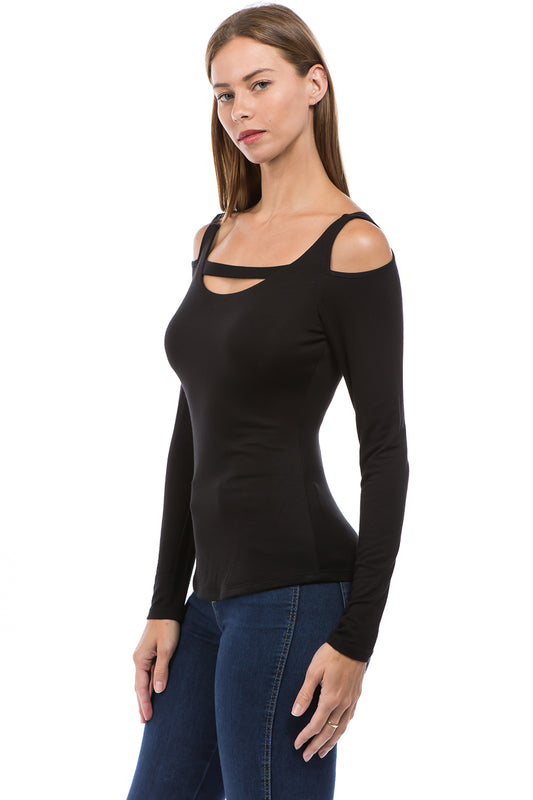 ROSALIE OPEN SHOULDER TOP (BLACK)-VT2593