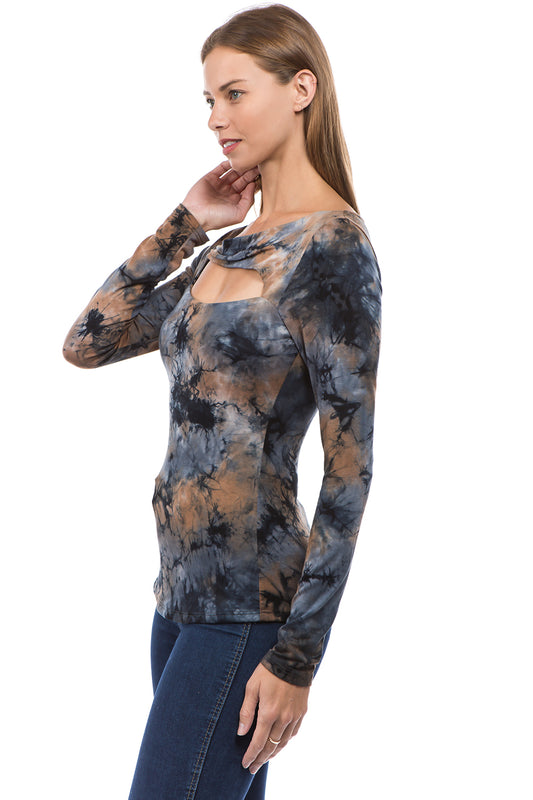 ROCIO SPLIT YOKE TOP (BROWN TIE DYE)-VT2595