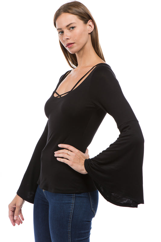 ROCIO BELL SLEEVE TOP (BLACK)-VT2598
