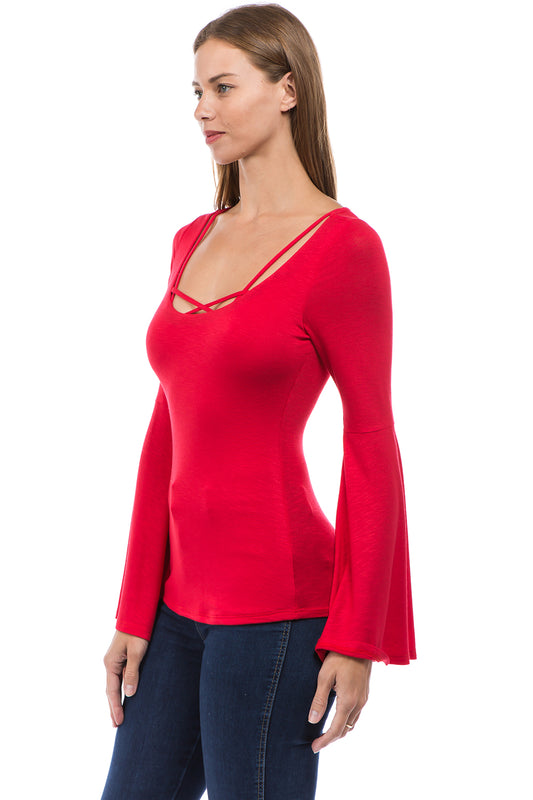 ROCIO BELL SLEEVE TOP (RED)-VT2598