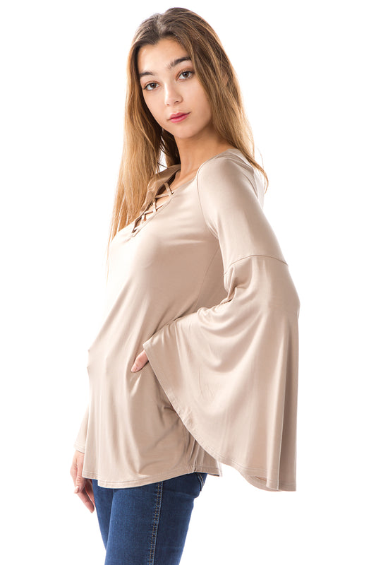 BEYONCE BELL SLEEVE TOP (BEIGE)- VT2404