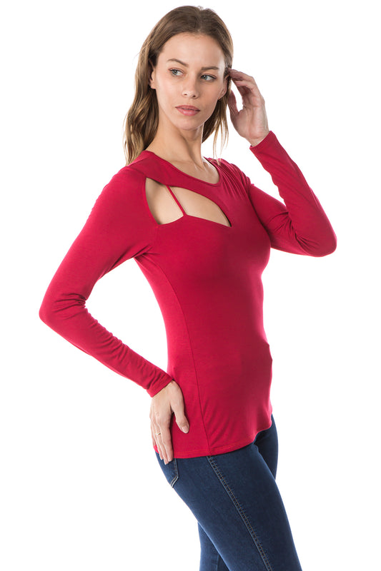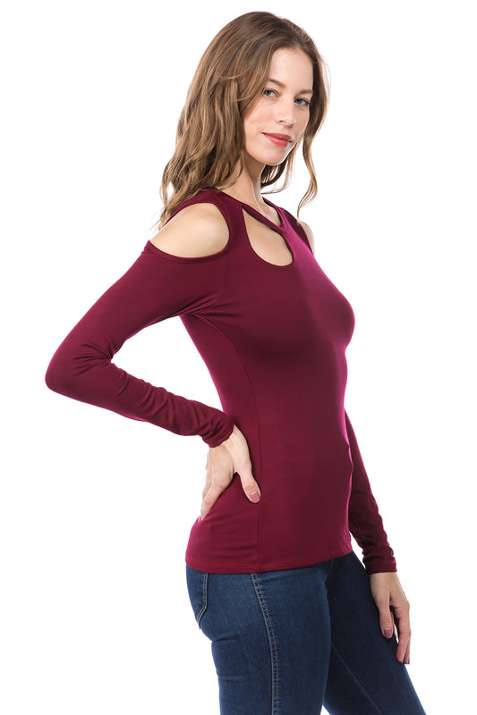 MEGAN COLD SHOULDER ASYMMETRICAL TOP (DARK WINE)- VT2572