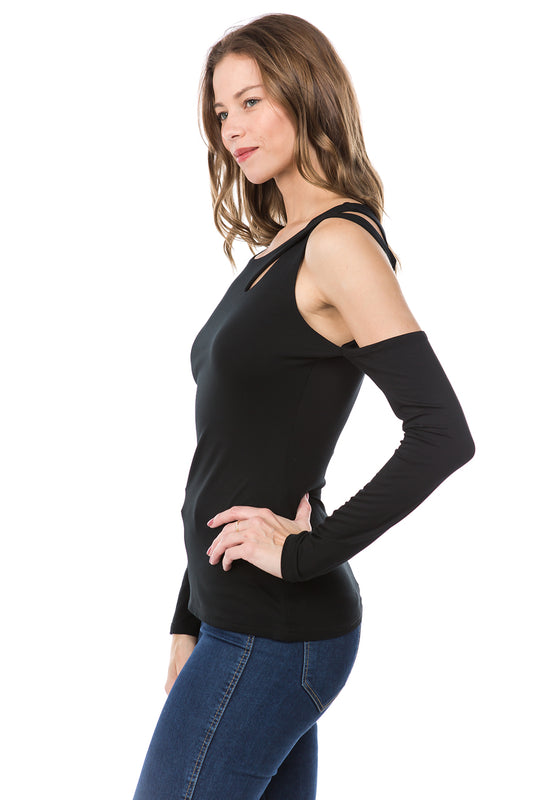 MEGAN COLD SHOULDER ASYMMETRICAL TOP (BLACK)- VT2572