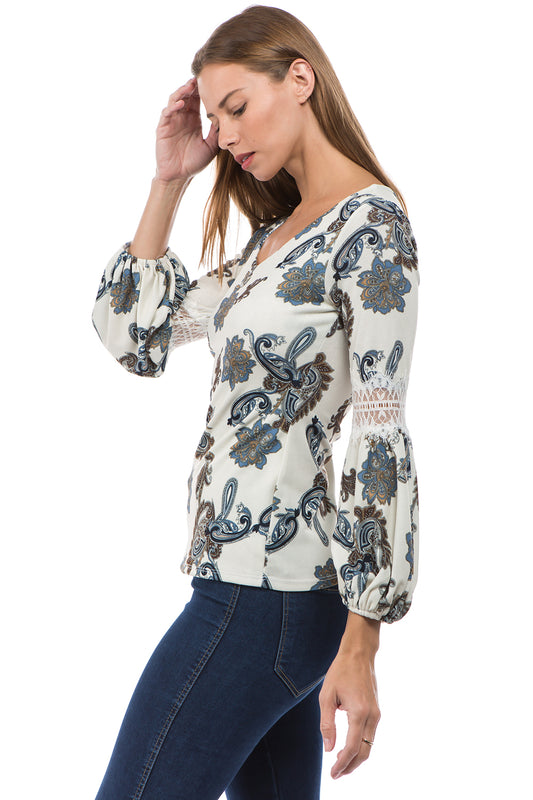 ROSALIE BUBBLE SLEEVE TOP (IVORY)-VT2589P