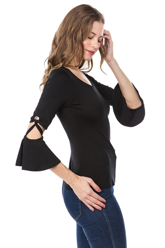 ROXY BELL SLEEVE TOP (BLACK)- VT2579