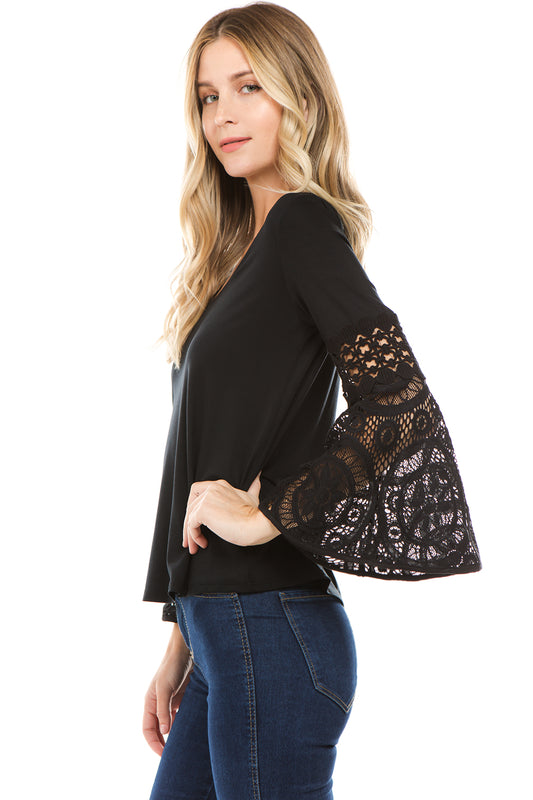 KINSEY BELL SLEEVE TOP(BLACK)- VT2439