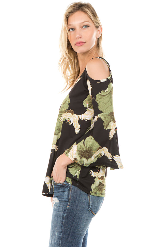 PRINTED BRENDA TOP (Black/Bird)- VT7365