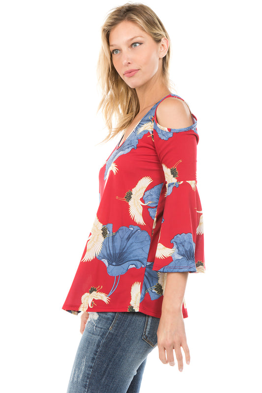 PRINTED BRENDA TOP (Red Bird)- VT7365
