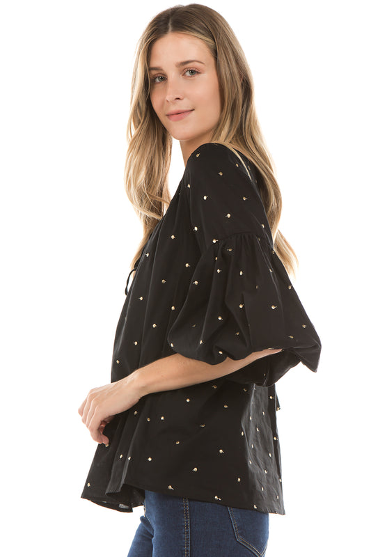 ESTRELLA BUBBLE SLEEVE TOP (Black)- VT2267