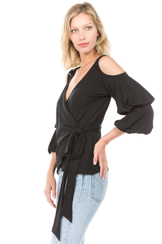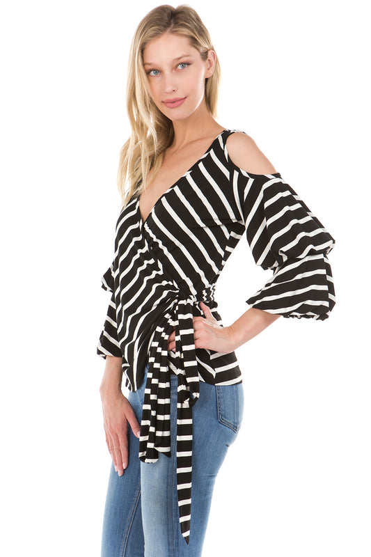 MARY WRAP TOP (Blk/Wht)- VT2198