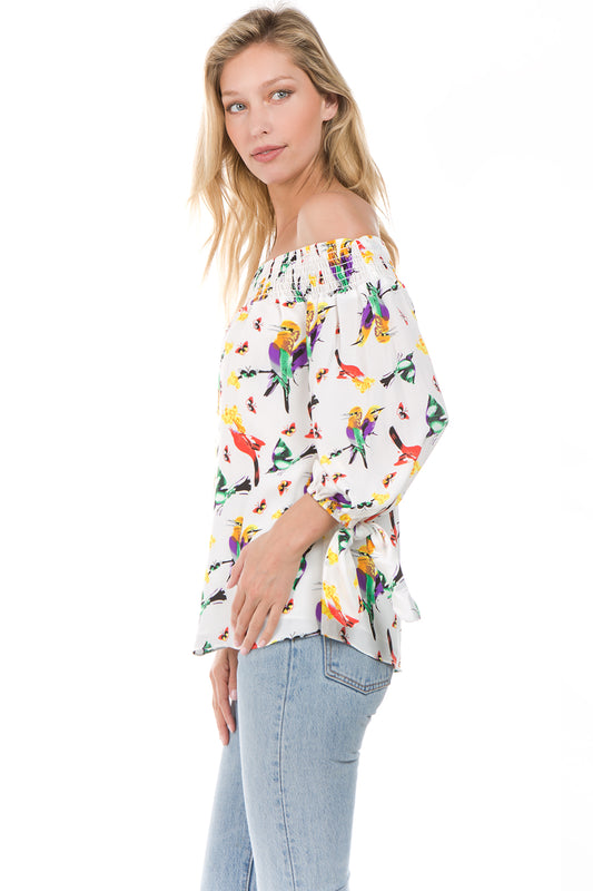 PRINTED OFF SHOULDER TOP (White Bird)- VT1071P