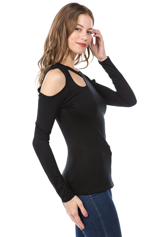 MEGAN COLD SHOULDER ASYMMETRICAL TOP (BLACK)- VT2572