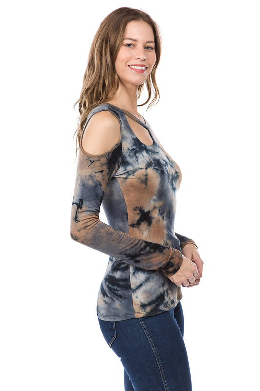 MEGAN COLD SHOULDER ASYMMETRICAL TOP (BROWN)- VT2572