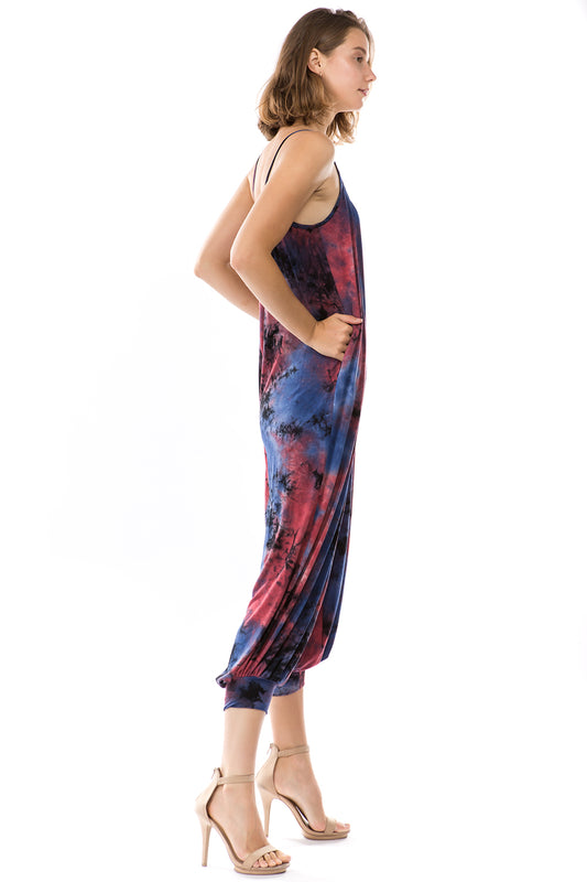 AGNES WIDE CAPRI JUMPSUITS (DARK MOON TIE DYE)- VD2765T