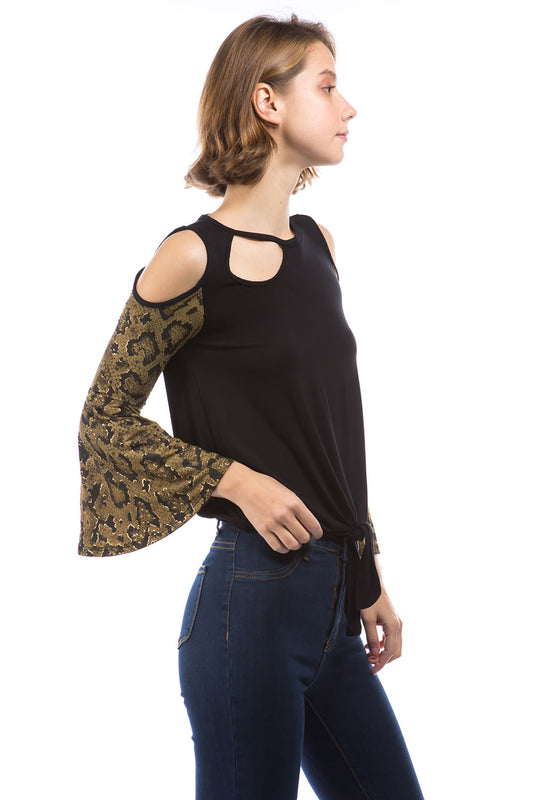 SNAKE BELL SLEEVE TOP (BLACK/SNAKE )- VT2848