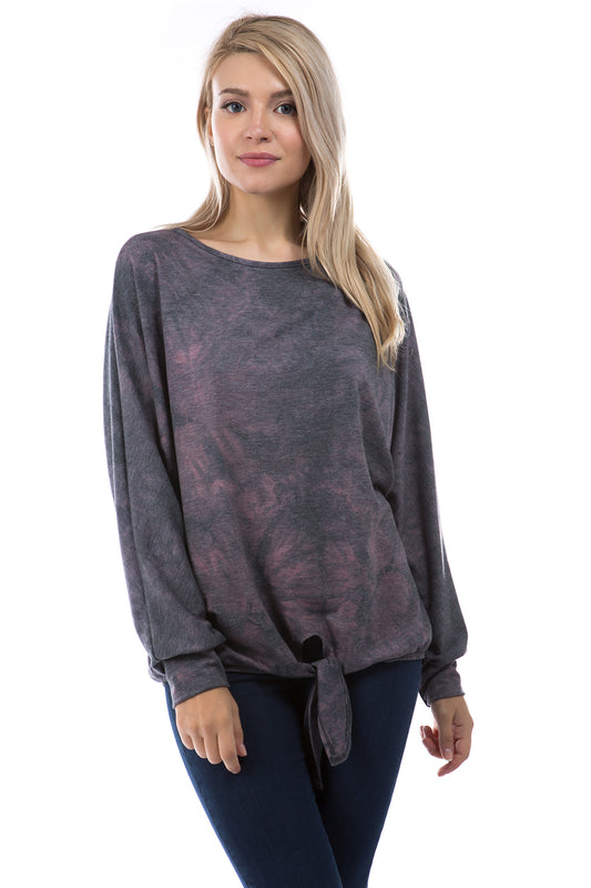 NORA WING SLEEVE TOP (FRENCH TERRY GREY/PINK TIE DYE)-VT2829